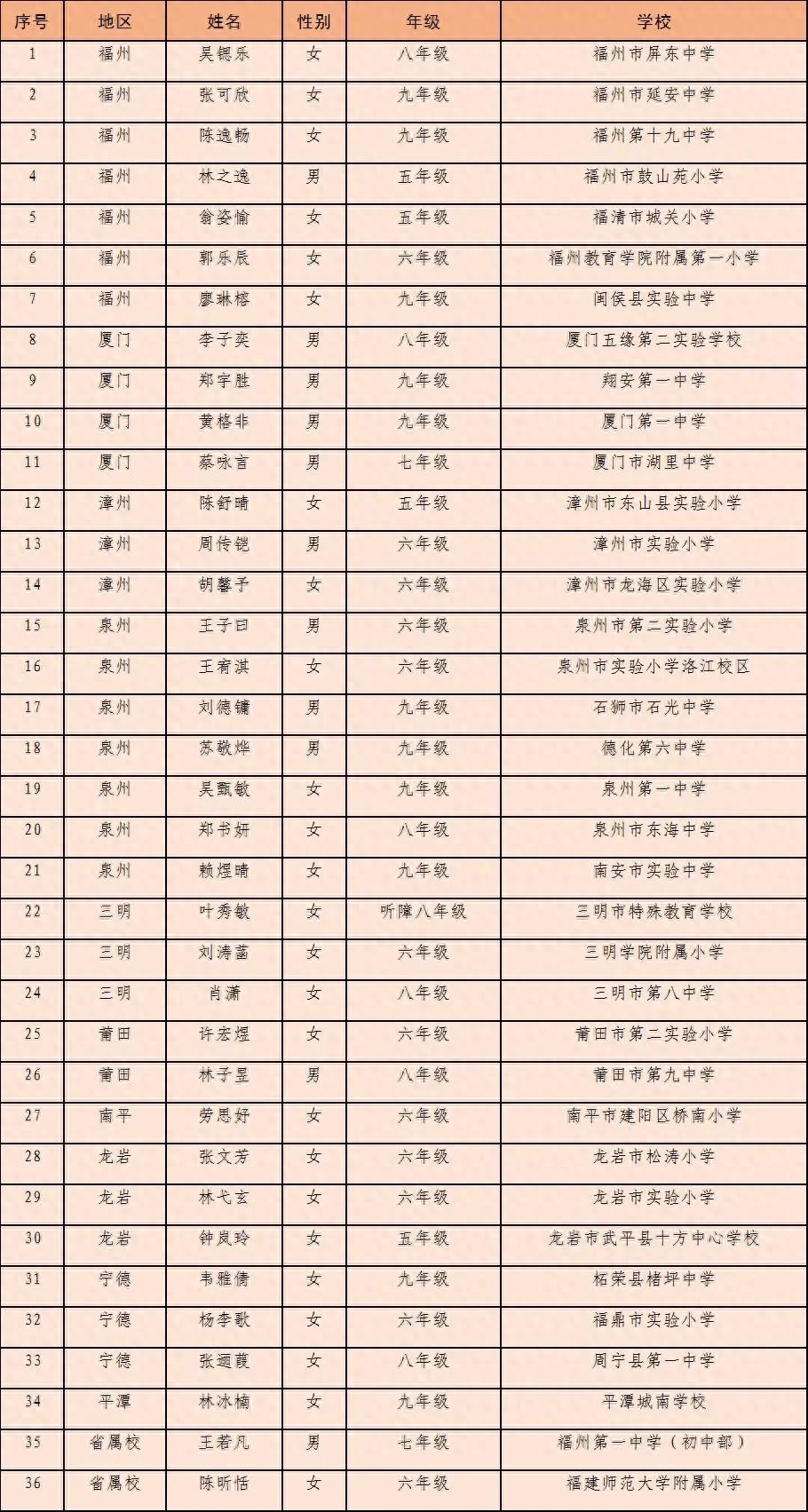日前,教育部办公厅发布《教育部中国福利会 中国宋庆龄基金会关于颁发第十五届宋庆龄奖学金的决定》,公布第十五届宋庆龄奖学金评审结果。福建省36名学生获评第十五届宋庆龄奖学金,福建省教育厅思想政治工作处获评第十五届宋庆龄奖学金优秀组织奖。
