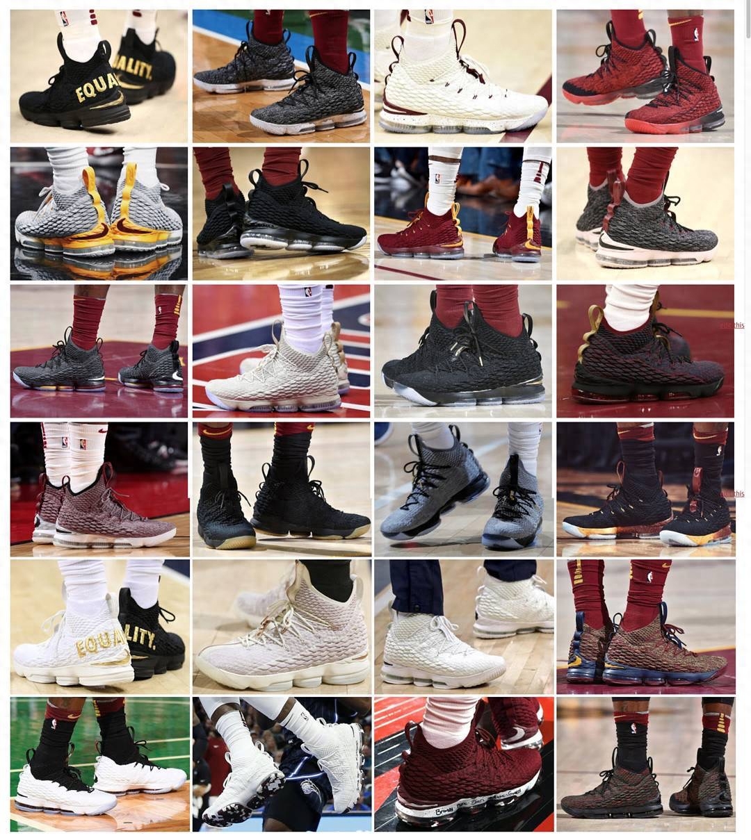 截至目前,老詹已经穿过24种不同配色的LeBron 15,你喜欢哪几双?