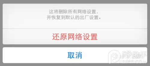 4、随后再请点击底部弹出的“还原网络设置”按钮,确认还原即可。等待系统还原成功以后,看看是否可以正常拨打电话。
