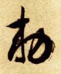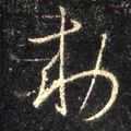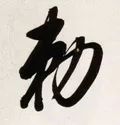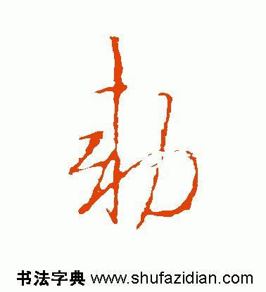 左部“来”字斜势抗肩,左展右收。首横露锋起笔,大抗肩,不要长;中间两点紧凑呼应,左高右低;长横起笔左探,大抗肩,略呈俯势,厚重,右边要收;竖笔高起,向下从点、撇中间穿过,竖身略左斜,不要重,劲挺有力,下面稍长,收笔起小钩;撇笔从横竖交叉处起笔,注意角度和长度;点笔在撇与竖分离处的右边,从竖笔里带出,勿长。