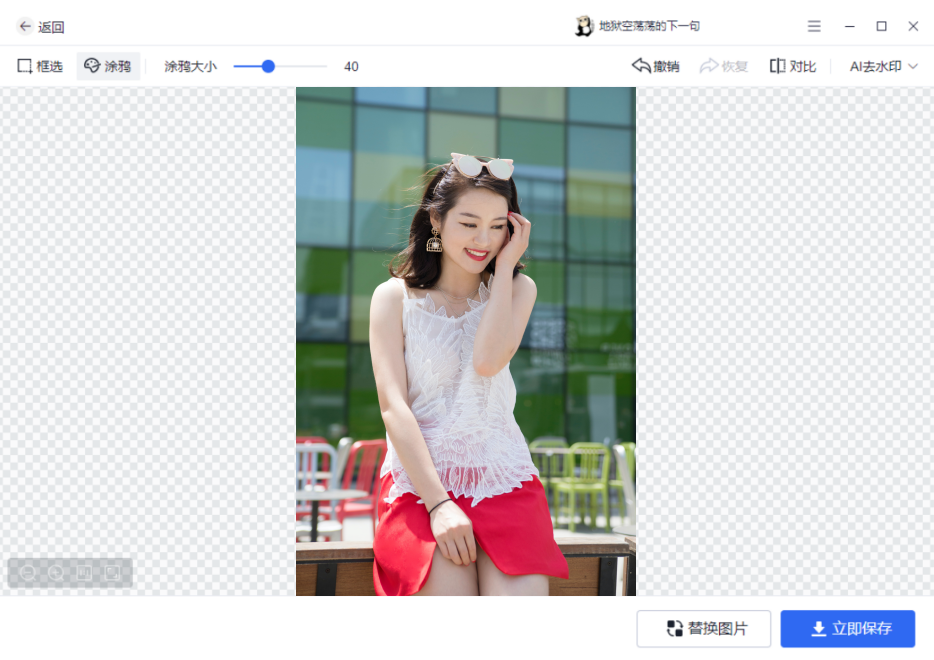 打开软件,选择【图片去水印】,添加带有水印的图片,选择去水印模式,涂抹水印所在位置,然后保存去除水印的图片就可以啦。