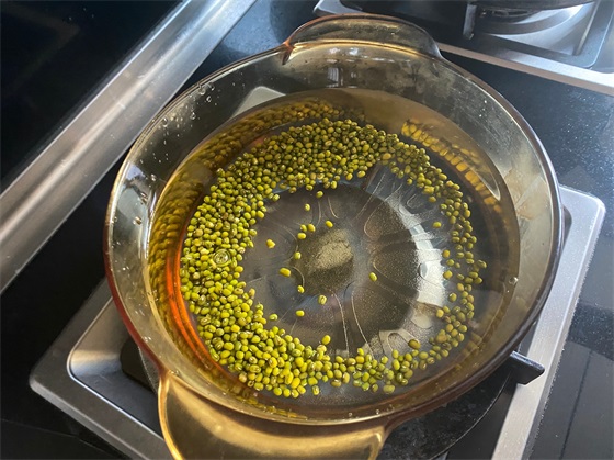 绿豆先下锅,加适量清水,大火烧开,煮10分钟。
