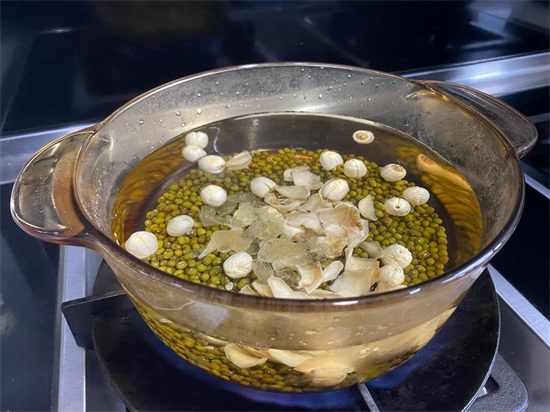 食材:绿豆、百合、莲子、冰糖。