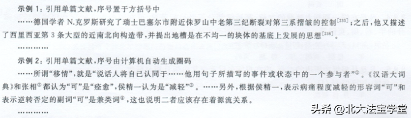 (5)多次引用同一著者的同一文献时,如果用计算机自动编序号,应重复著录参考文献,但参考文献表中的著录项目可以简化为文献序号及引文页码。如图中④的引用方式。