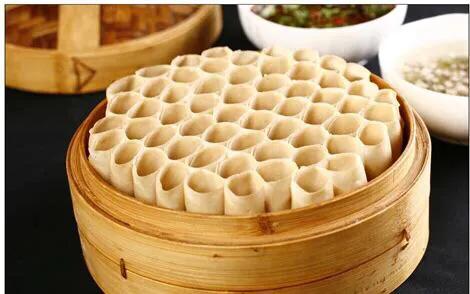 3,用手提住后边卷到食指上,并且把它立起来(直立),放到笼屉里
