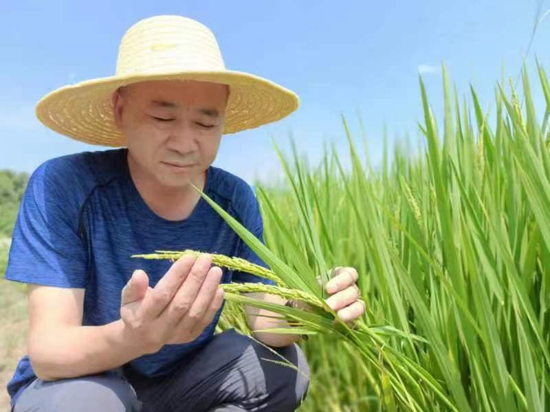 凤台县杨村镇农技人员在查看水稻生长情况。刘长明供图