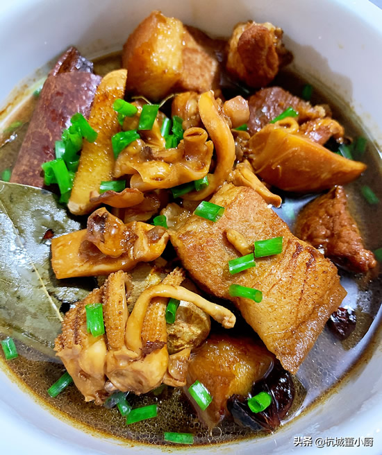 5、 再倒入料酒、生抽、老抽和蚝油,最后加入过筛的原汤,高火煮30分钟转中小火焖20分钟即可。