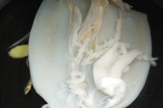 把鱿鱼处理好之后放入锅里,同时往锅里放入几片生姜之后倒水煮开,这样生姜的味道可以去除一定的腥味。