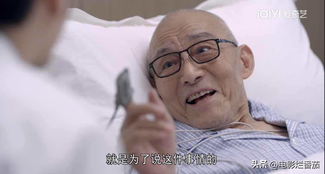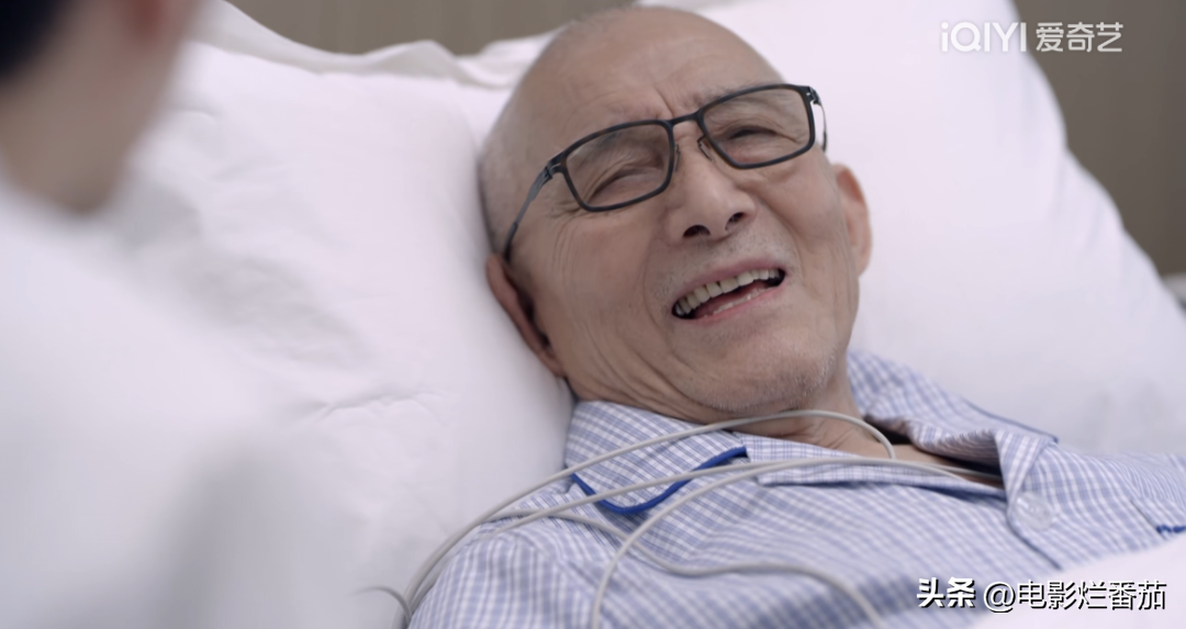 因为一直躺着或坐着,老爷子的表演只能靠眼神、表情、台词,再加上一些小动作来完成。