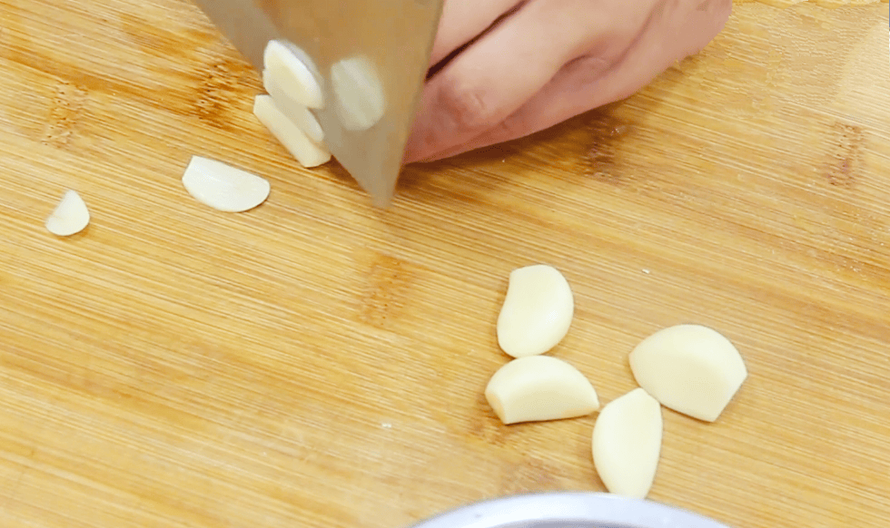 4.准备料头:大蒜拍散切片备用,干辣椒切碎备用。