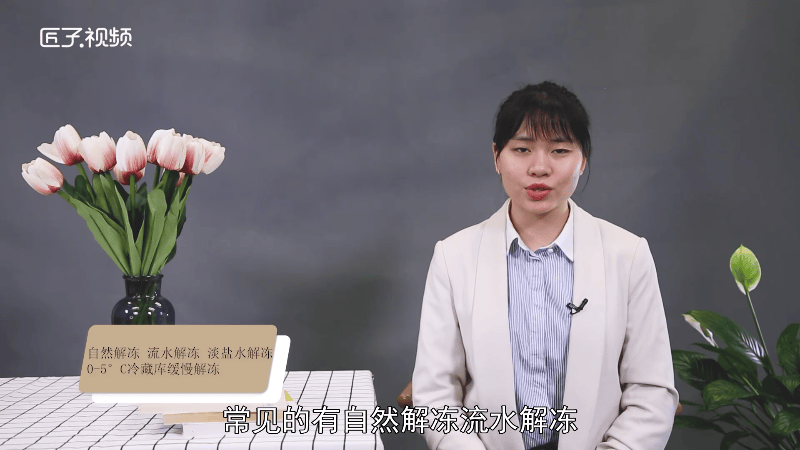 鱼片的解冻方式以外部解冻为主,常见的有自然解冻、流水解冻、淡盐水解冻、0-5°C冷藏库缓慢解冻等。最理想的解冻方法是放在冰箱冷藏室解冻(一般在0°C~5℃),冷藏室解冻使得鱼片化冻均匀,解冻后温度仍处于0-5°C左右,能保存鱼的最大新鲜度,并且能保持鱼肉的鲜嫩,肉汁损失较少。但是这种方法耗时较长,需要提前一晚把鱼放进冰箱的冷藏室解冻。另外流水解冻,泡在清水中或淡盐水里大概15-20分钟,然后晾干水约5分钟即可入锅。或者把鱼放在容器中,加满凉水,一定要没过鱼,然后在水里加几滴醋精,这样鱼很快就解冻了。