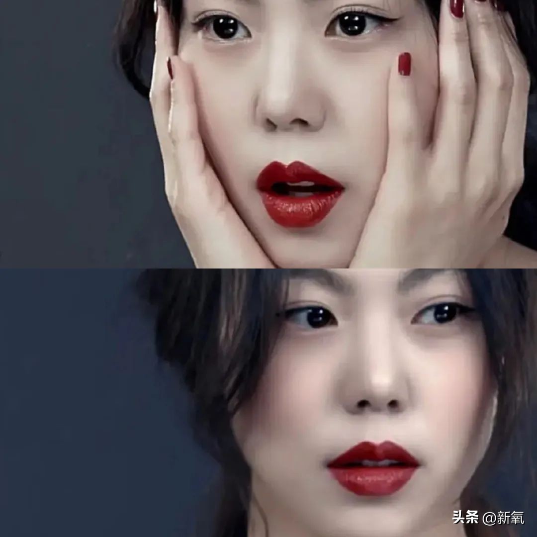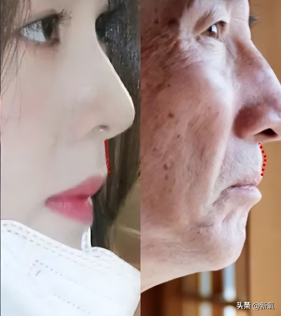 没错,就是嘴唇!她的唇红部分明显扩大了一倍,人中也短了,这逆生长不得不服。