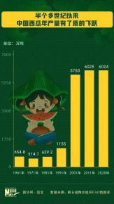 如果将世界第二到第十产瓜国的总产量相加,也只有中国的1/3左右。