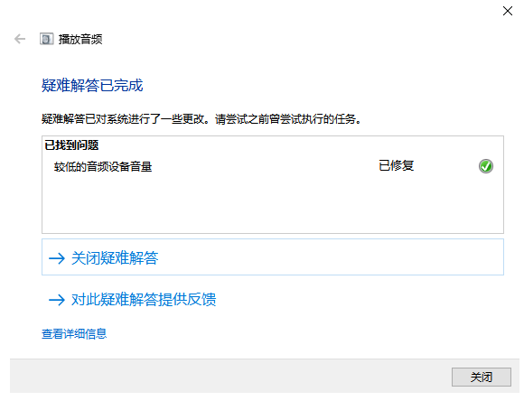2.下面可以打开答疑解难页面,Windows可以自动识别声音问题及其得出相应的解释建议。