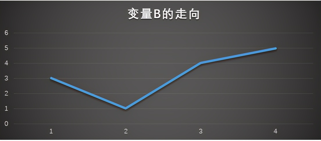 通过上面的两个折线图,我们可以发现,变量A的走势与变量B的走势相同,如果变量A的均值a和变量B的均值b比较接近,那么我们可以知道,A和B每时每刻的方向的变化都是相同的,正负号是相同的,所以,协方差得出的值也是正值,所以,A和B的变化方向是相同的。