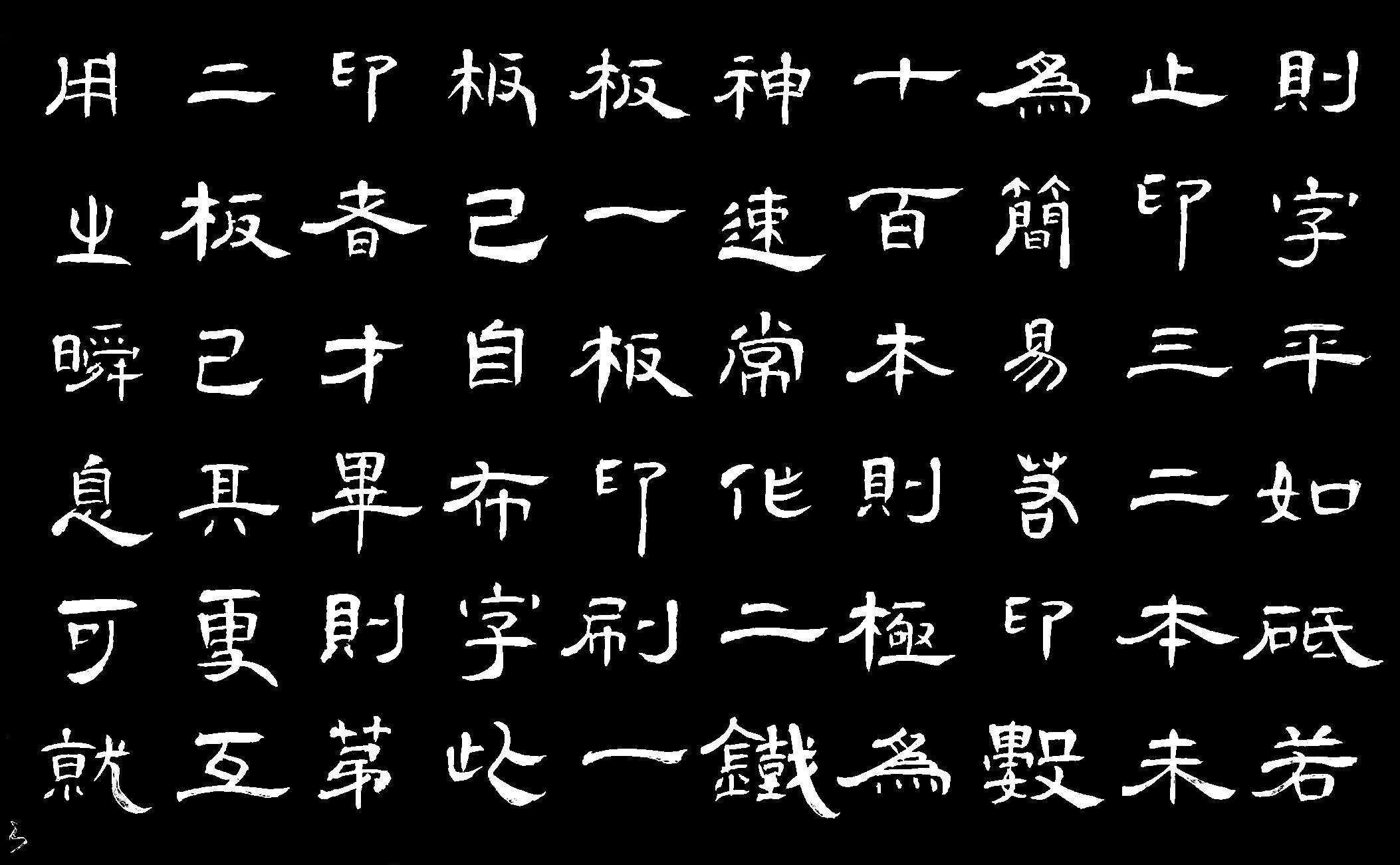 每一字皆有数印,如“之”“也”等字,每字有二十余印,以备一板内有重复者。不用,则以纸帖之,每韵为一帖,木格贮之。有奇字素无备者,旋刻之,以草火烧,瞬息可