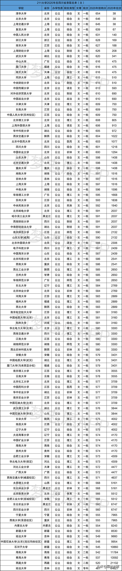 由于每所院校在各省的录取分数不一样,本文小编就以河南、四川两个省为例。为大家带来2020年全国所有211大学的高考录取分数线,供2021届高考生参考: