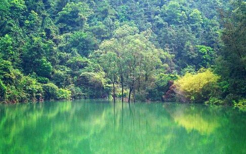 水库岸线自然曲折,变化多端,植被茂密葱郁,河水碧绿清澈。这里的空气十分的清新,堪称大自然氧吧。置身于此,满目苍翠,让人神清气爽,心旷神怡。