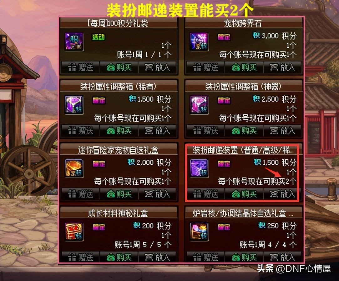 在积分商城内,获取的装扮邮递装置,不需要买五一耕耘礼包,两个都能白拿。本次积分商城,每周能领取600积分,活动持续8周,可获得4800积分。而2个装扮邮递装置,兑换完毕3000积分,不氪金获取绰绰有余!