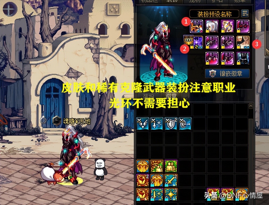 但注意了,零氪获取4个白金徽章,存在着限制,皮肤和稀有克隆武器装扮,在职业方面上有要求。皮肤和稀有克隆武器装扮,只能是同系职业,比如男鬼剑士对应男鬼剑士,女鬼剑士对应女鬼剑士,男格斗对应男格斗等等,否则将无法穿戴。