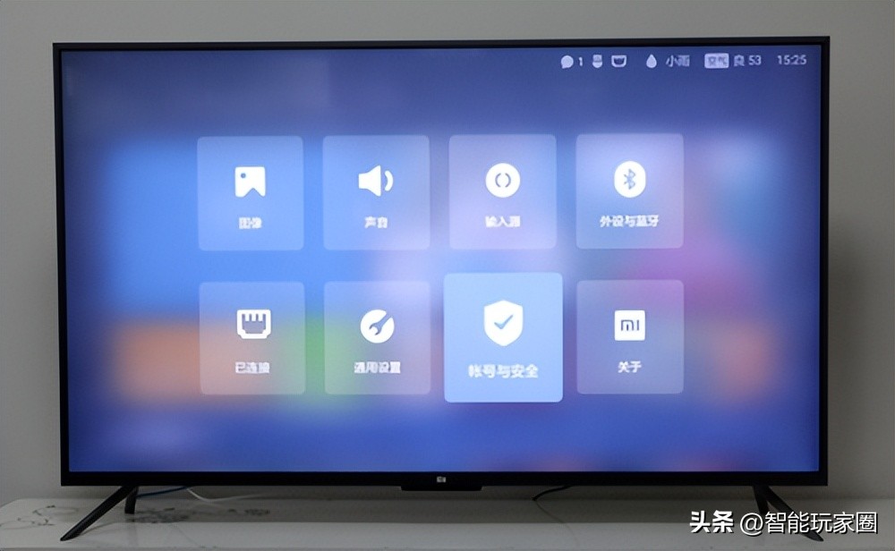 首先进入到你家中小米电视的主页,选择小米电视中的“设置”,点击进去后找到“帐号与安全”的选项,把“安装未知来源应用”设置为允许;