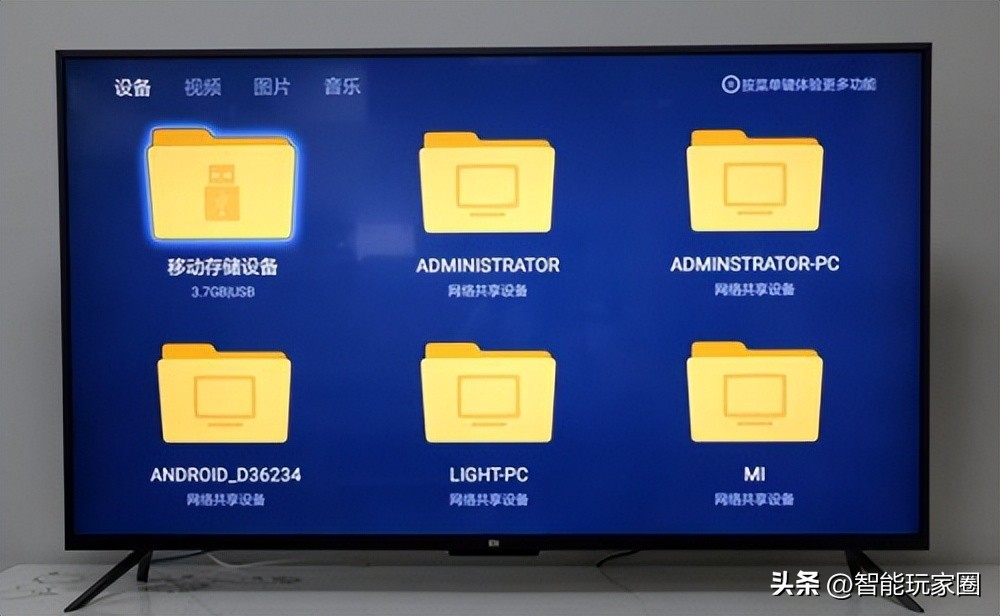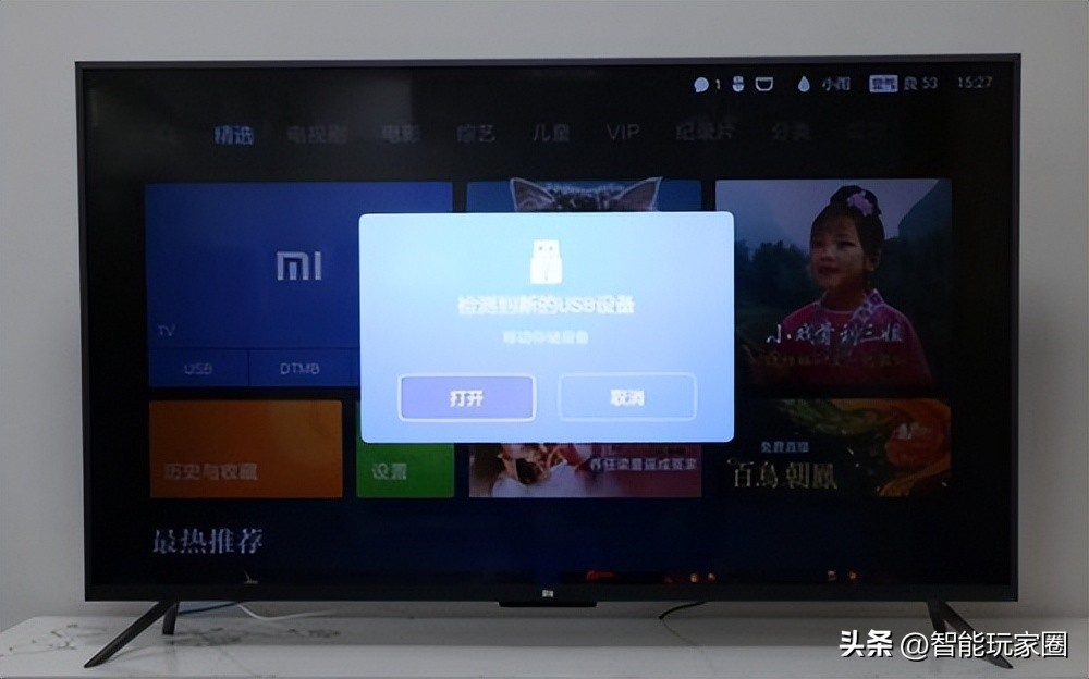 1、把U盘插到小米电视的USB接口上面,系统会自动检测出设备;