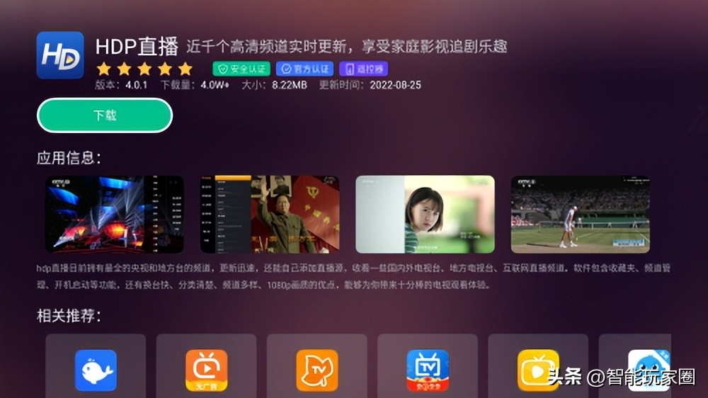 随着智能大屏电视观影体验的不断提高,许多应用也都推出了电视版。HDP直播就是一款挺好用的电视应用,适配于安卓智能电视、机顶盒等设备,免登录,无广告,超多频道,完全免费,我就给家中的小米电视安装了HDP直播。如果有用小米电视的朋友,却不知道怎么安装这一类的第三方视频直播应用,可以参考一下我的方法,So Easy!