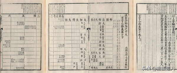 《百官公卿表》也是《汉书》首创,以简洁的方式记载了西汉时期三公九卿的迁免,名为“表序”,实为志体,除了对秦汉时期的官制概况和演变进行说明之外,还对其基本职能及设置得失进行了探讨,开创了正史记载官员制度的先河。