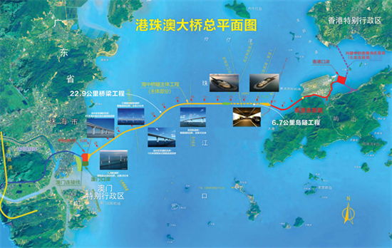 而对于整个港珠澳大桥的规划情况来看,这一座桥东起香港国际机场附近的香港口岸人工岛,向西横跨南海伶仃洋水域接珠海和澳门人工岛,止于珠海洪湾立交,桥隧全长55千米,其中主桥29.6千米、香港口岸至珠澳口岸41.6千米,桥面为双向六车道高速公路,设计速度100千米/小时。