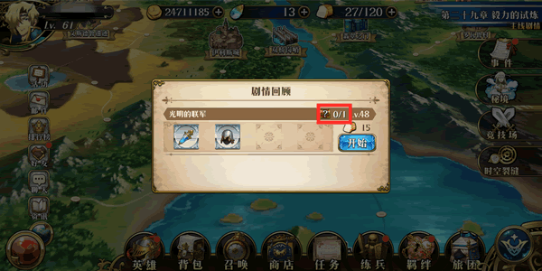 虽然这个隐藏宝箱提示跟时空裂缝中的一样,但是传说君还是为小白做一下指引,因为新手玩家容易把这个提示搞混乱,会去宝箱1/1中去查找然后说找不到,其实这是个错误的查找方式。如果你没有在这个剧情中拿过隐藏宝箱,就会有宝箱0/1的提示,玩家可以根据这个提示,在主线剧情中查看哪个剧情没有拿过隐藏宝箱,然后就可以去挖宝了。
