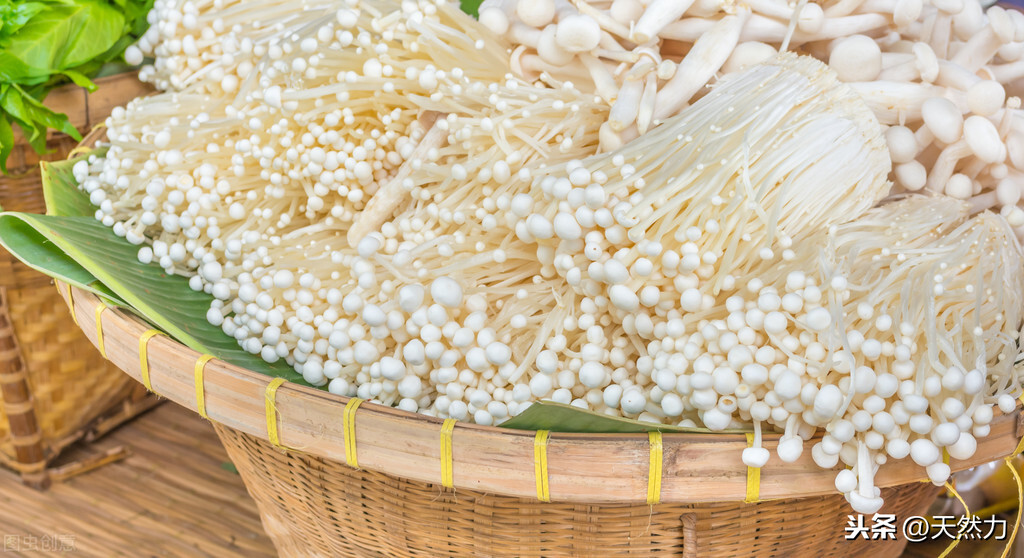 3、菌顶是半球形的金针菇比较鲜嫩,菌顶长开来了的,说明老了。北方的金针菇颜色一般是白的,南方还有一种金针菇是黄的,白色的金针菇韧性大,会有点塞牙,而黄的不仅香味浓、口感还鲜嫩。