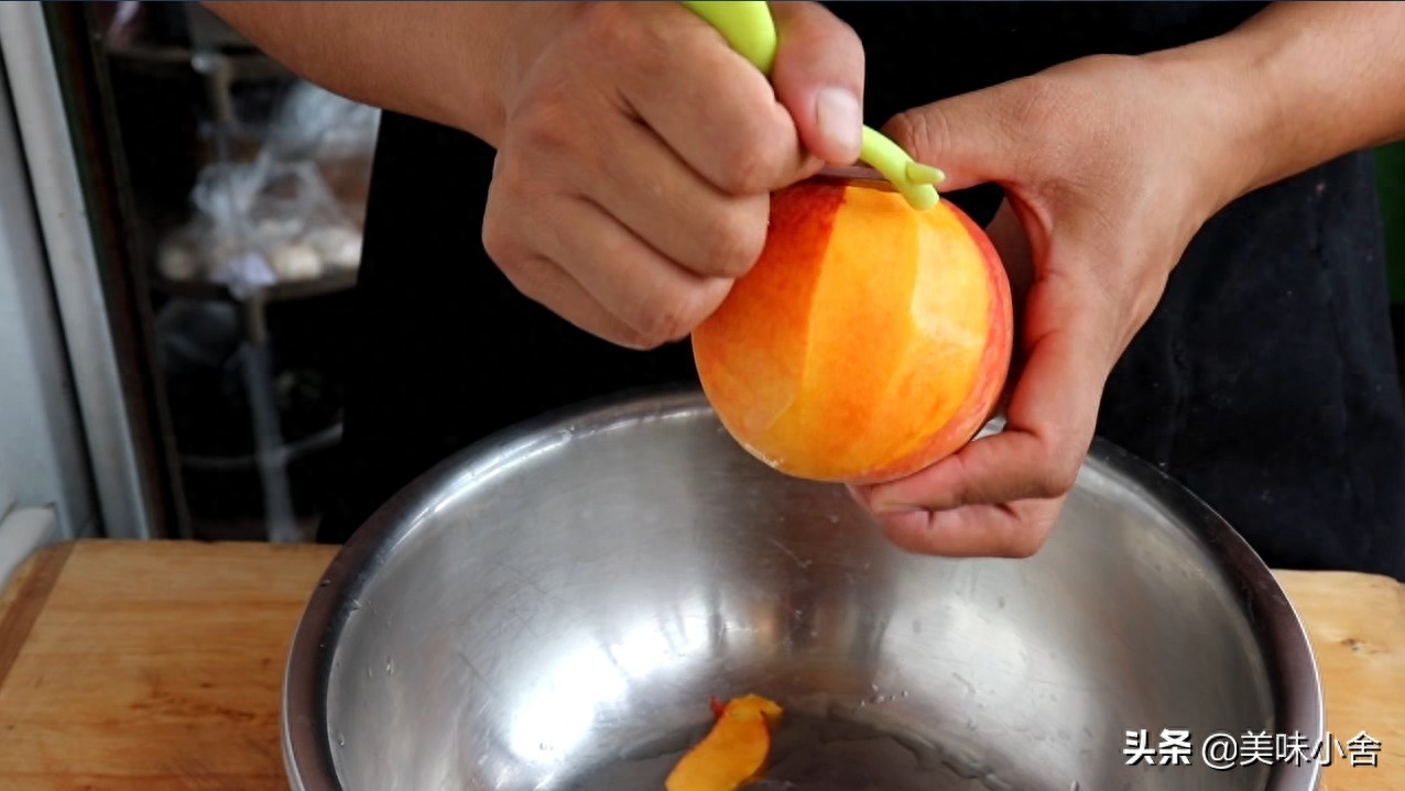 黄桃洗干净后,再挨个把桃子的皮全都削掉