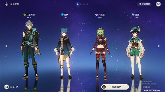 这个队伍我已经好几个月没有更换了,即使后面又接着复刻了很多角色,但是就目前来说,这个配队效率比较高,最后一个位置搭配的是温迪,毕竟是每日任务的聚怪小能手,而且还能将草种子卷入空中,然后由久岐忍直接引爆。