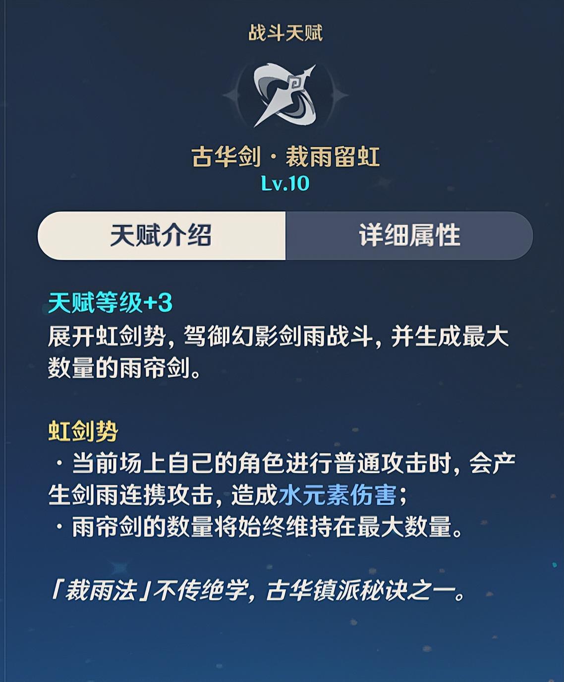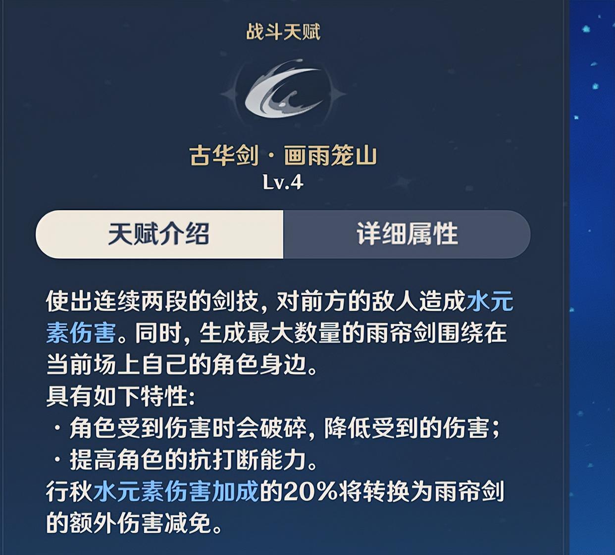 行秋释放元素战绩的同时,周围还会产生四把雨帘剑,每把雨帘剑结束时,回复总计24%的最大生命值。