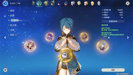 关于行秋的圣遗物,我搭配的是两室加上两追忆,剩下的戴的是暴击头套,剩余的是攻击砂以及水伤杯,当然前期圣遗物不好再加上没有祭礼剑的情况下,戴上充能沙,毕竟行秋的主要作用是挂水。