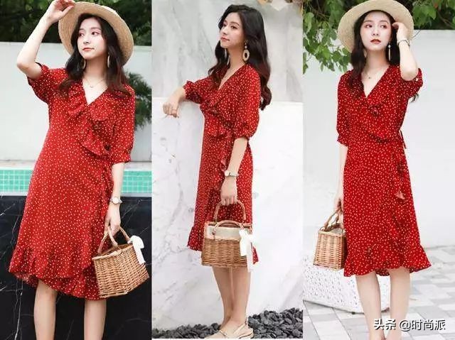 都知道裹身裙简约而时尚,又随意穿脱的设计,让你穿上显瘦又时尚,比较特别的地方在于这款复古的碎花A字版型,相信大家是不多见,而且这款裙子是红色为主色,非常艳丽还十分复古,荷叶边设计的领口,很有高贵气息,特别是下身胖的女生,穿上就像回到了学生时代的甜美气质。