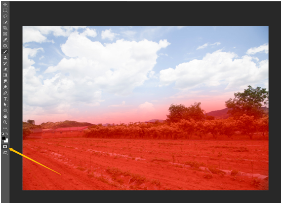 这时选择画笔工具在图像上面涂抹,涂抹的区域就显示为红色,这个红色的区域就是将被隐藏的区域,再次点击快速蒙版图标,就建立了选区;