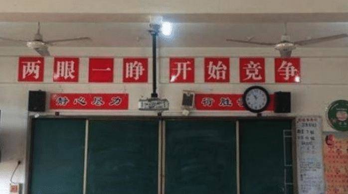 3、再来看看教室里面的标语,可能你会觉得教室基本都是鼓励的话语,应该没有搞笑的,不不不,其实你错了,还真有,还真被小编发现了。你放心绝对不是好好学习,天天向上,那就是这是“两眼一睁,开始竞争”,这还真的挺独特的哈。可见为了给孩子一些乐趣,或者是鼓舞,老师也想尽了一切办法呢!可谓操碎了心呢!不过这样一看绝对是要面临一场大规模的考试了,只愿这独特的标语能有一个好结果吧!