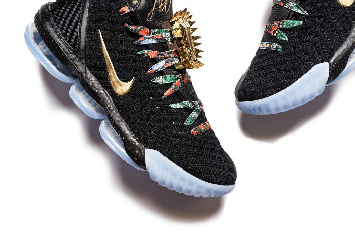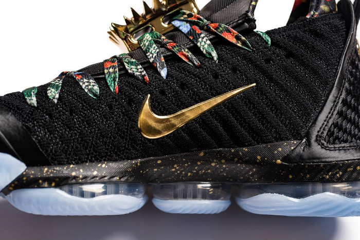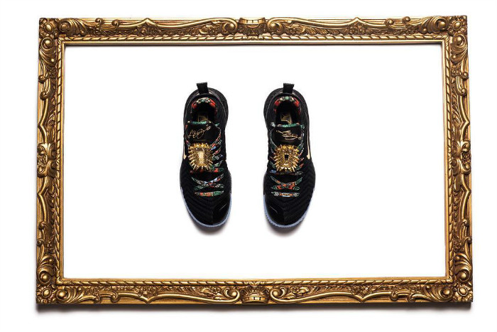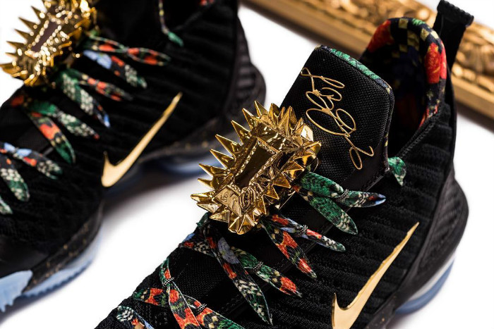 延续 LeBron 9 的配色设计方案,以黑金色调呈现,华丽内衬以及霸气十足的鞋带扣,都彰显了它非同凡响的王者身份。