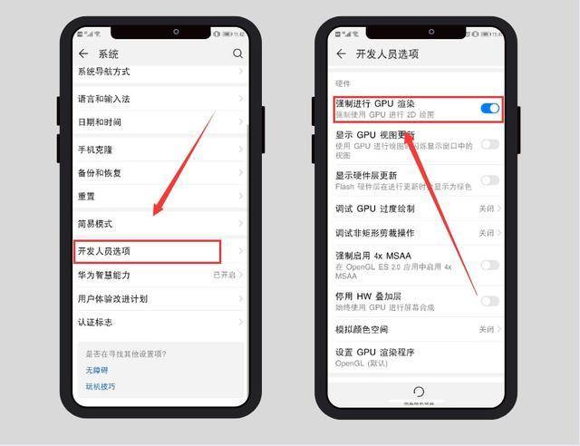 性能是衡量手机价值一个非常重要的标准,即使很多人的手机是用来打打电话聊聊微信,但还是非常看重性能,我们只需要打开【开发人员选项】中的【强制进行GPU渲染】。
