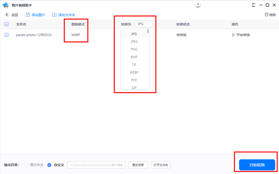 可以看到原格式,再选择想要转换的格式,再点击【开始转换】就可以了!