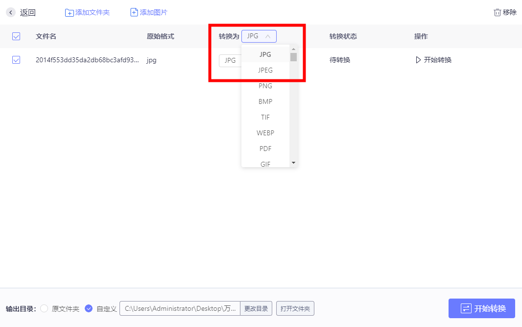 选择【添加文件夹】就可以上传多个图片文件,进行批量转换啦!