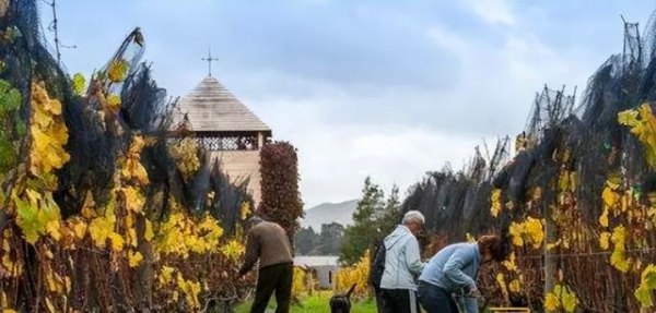 将成熟的葡萄从葡萄园中采摘。