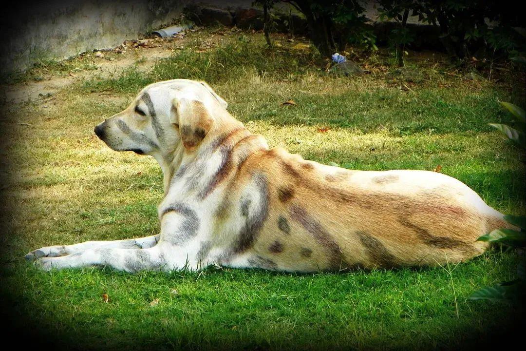 被染成老虎纹的拉布拉多。说真的,像打牌输了被画花了 | juggadery / Wikimedia