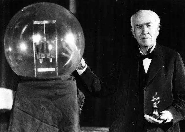 1874年,加拿大的两名电气工程师申请了一项电灯专利:向玻璃泡中充入氮气,并用通电的碳杆发光,因为资金的缺乏这项技术没能被继续完善,1875年他们将专利卖给了爱迪生。获得专利后的爱迪生不断尝试改良灯丝,通过数年的反复试验,终于——在1879年,爱迪生发明高阻值碳灯丝真空白炽灯,建立起全新的常压电力输送系统。1880年,爱迪生和他的团队制造出能持续发光1200个小时的碳化竹丝灯。点燃了世界上第一盏有商用价值的稳定电灯。自此,爱迪生的名字,伴随着电灯走入了千家万户。
