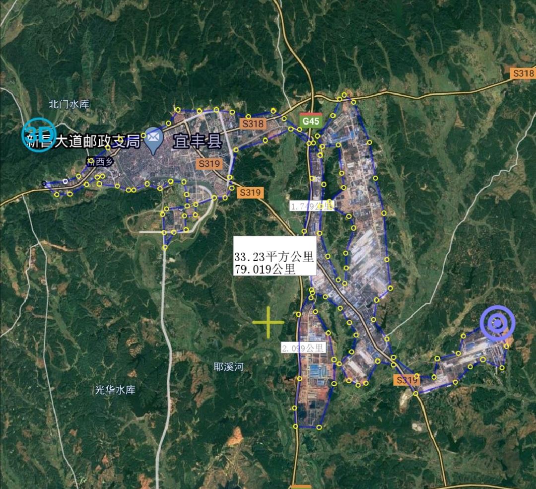 宜丰县位于市区的东北部地区,城区建在耶溪河两岸,河流绕城而过,在城区的东部G45高速公路东侧修建有工业园区,修建了很多工厂。工业园区面积巨大,比城区大二倍左右,可以说宜丰县是个工业县城。