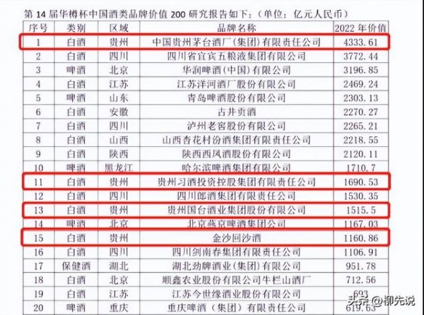 白酒产业作为贵州飘香世界的亮丽“名片”,支柱作用明显,带动效益巨大。目前,白酒产业在贵州已逐步构建了以酱香为主导,浓香、董香、清香、兼香等多香型协同发展的产业格局。下面根据此前发布的“中国酒类品牌价值200研究报告”榜单数据,简单来看看贵州酒品牌经营情况。