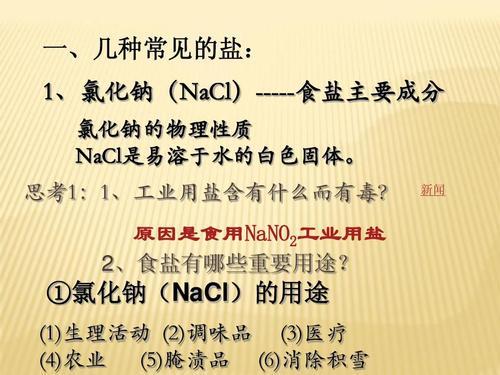总之,食盐的主要成分是NaCl,它是一种稳定的化合物,具有很多的应用场景。无论是在饮食、医疗还是工业领域,食盐都扮演着非常重要的角色。