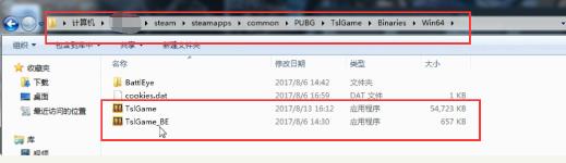 在steam库中找绝地求生文件-右键-属性-本地文件-浏览本地文件-点击“TslGame”文件,点击“Binaries”文件-点击“Win64”文件就能看到绝地求生游戏的两个进程文件“TslGame”和“slGame-BE”。