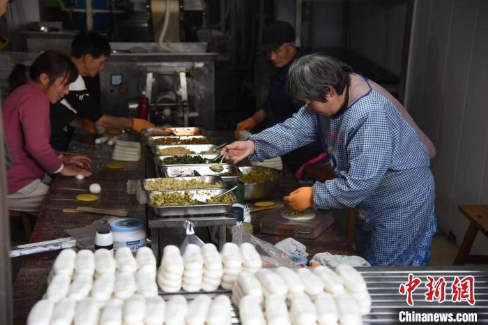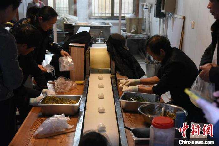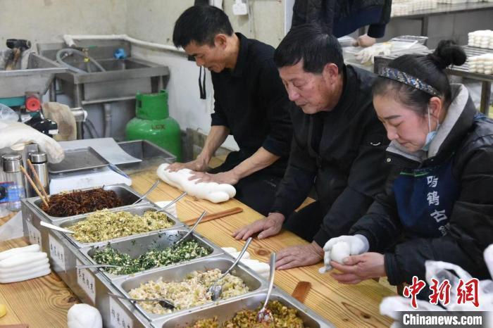 制作年糕饺。 中新网记者 范宇斌 摄